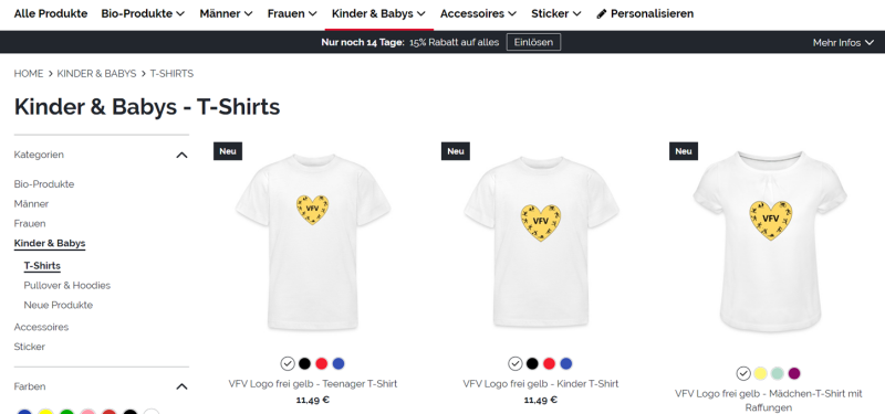 Bei der Firma SPREADSHIRT haben wir unser Logo in verschiedenen Farben hochgeladen, damit ihr euch T-Shirts, Pullover, Schildkappen, Turnbeutel und noch viele weitere Vereinsartikel eigenständig bestellen könnt. Selbstverständlich handelt es sich hierbei um einen Non-Profit Shop unsererseits, da wir als Verein natürlich nicht auf Gewinnerzielung ausgerichtet sind.
